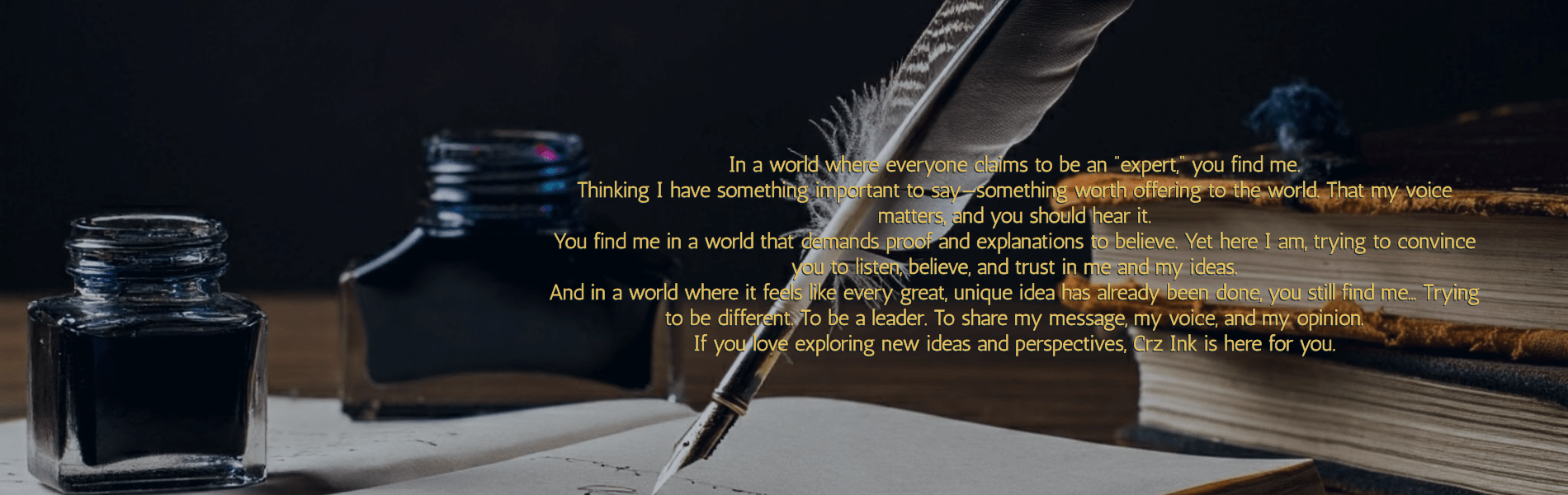 Welcome to Crz Ink! This is where my voice meets yours—a space for honest conversations, creative exploration, and meaningful reflections on the world around us.